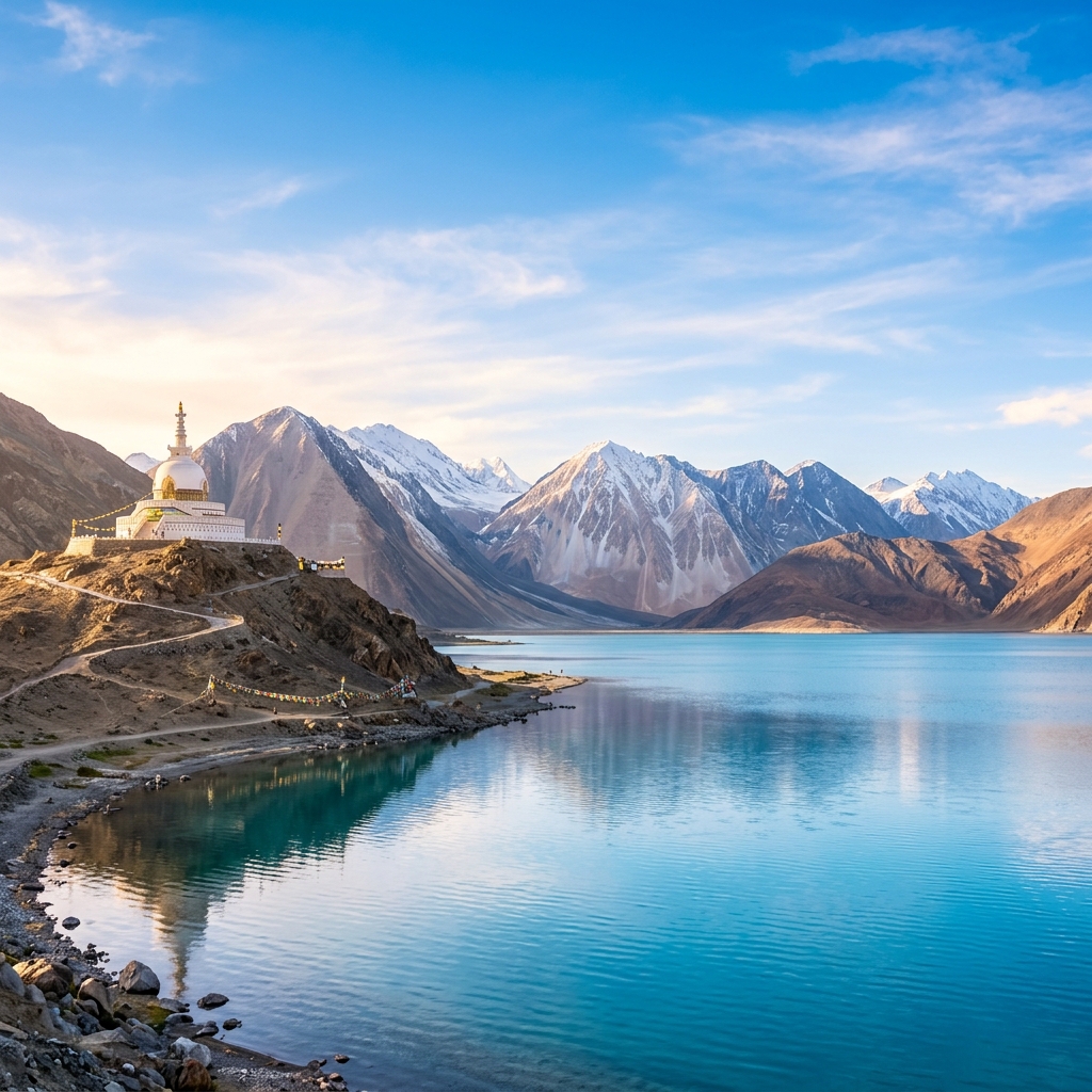 Journey through the mystic landscapes of Ladakh — from the turquoise waters of Pangong Tso to monasteries perched on clifftops.